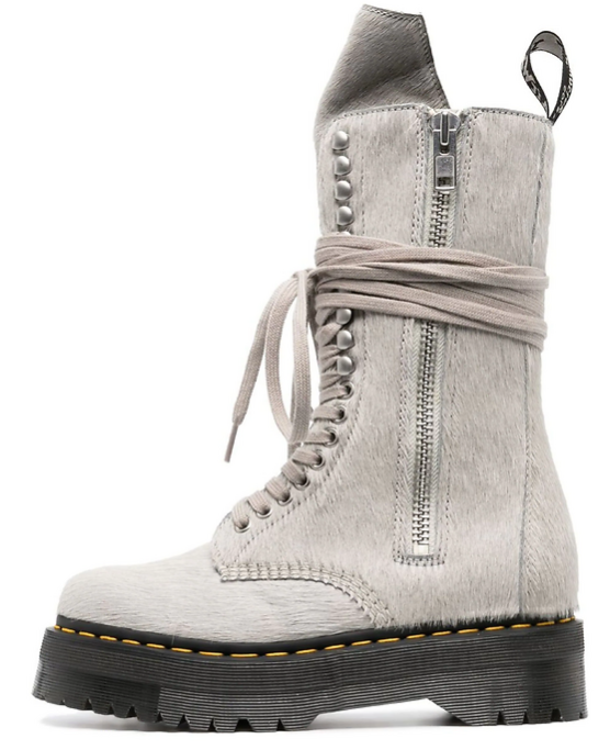 Dr Martens x Rick Owens Quad Sole Calf Hair Grey легко сочетаются с различными стилями одежды. Они станут идеальным дополнением как к повседневному гардеробу, так и к более формальным образам. Эти ботинки — это ваш новый фаворит для любых ситуаций, будь то вечерний выход или прогулка по городу.