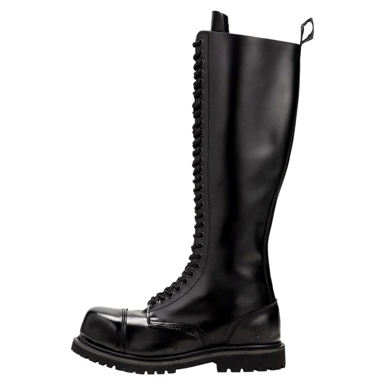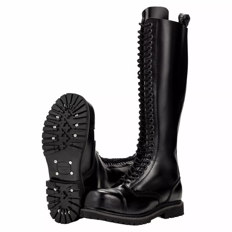 Эти ботинки - настоящие произведения искусства, выполненные из высококачественной кожи, которая со временем становится только лучше. Их глубокий черный цвет и гладкая текстура придают им элегантный и готический вид, а 30 металлических люверсов создают уникальный акцент, подчеркивая вашу индивидуальность и смелость.